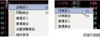 组合窗口上右键点击,在弹出的菜单中选择闪电买入\闪电卖出,在盘口的交易价格上点击右键,在弹出窗口上选择闪电买入,或者闪电卖出: