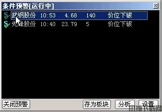 在预警列表上双击“价位下破”或者“价位上破”的股票项,将弹出闪电卖出或者闪电买入的对话框,如下图: