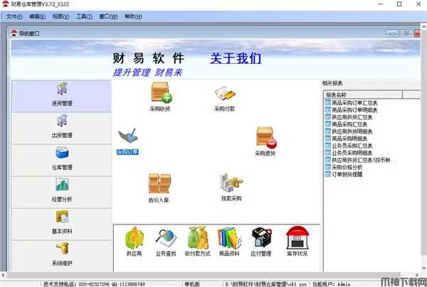 财易仓库管理软件主要分为销售管理,采购管理,仓库管理,基本资料,系统设置(权限管理)五大部分主要功能包括