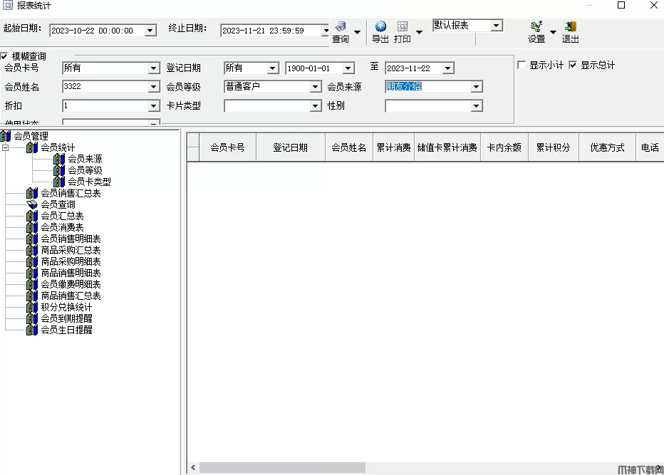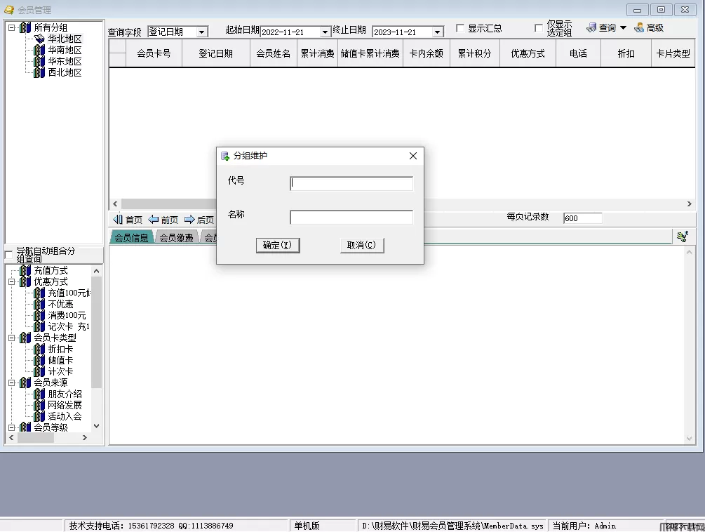 在导航栏左边,点击右键,可以增加统计分组,子分组。在导航栏右下角,可以设置会员等级,会员分类等其他配置信息。