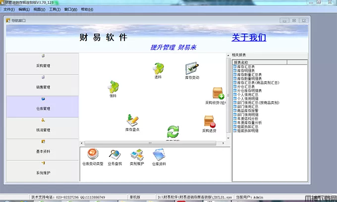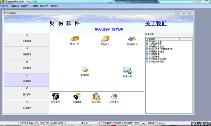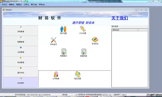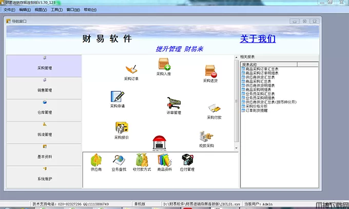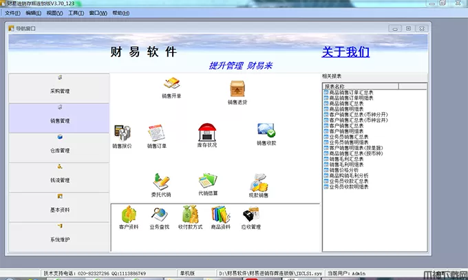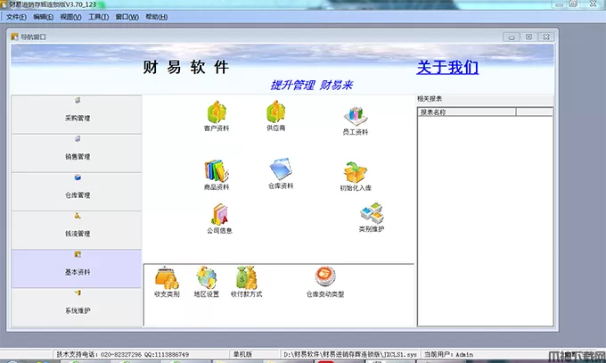 财易进销存管理辉煌版是一款专业实用、功能强大的进销存软件,软件集成销售管理,采购管理,仓库管理,财务管理,基本资料,系统设置(权限管理)等多项实用的功能。