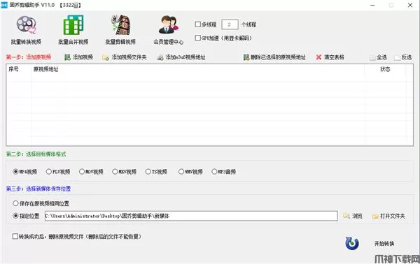 1、批量转换视频界面:批量添加视频,一键就能转换视频格式并保存。