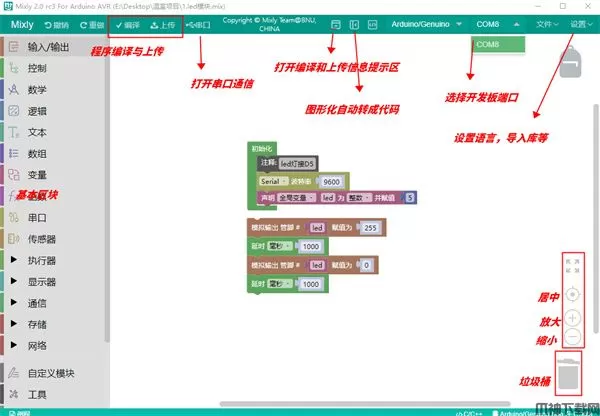 mixly3.0编程软件是一款非常好用且功能强大的米思齐编程软件,是由北京师范大学米思齐团队独立研发的一款图形化编程工具。它基于Google的Blockly图形化编程框架开发的免费开源的图形化Arduino编程软件。目的是为了配合Arduino UNO开发板套件使用,实现Arduino程序的图像化编程。所谓的图形化编程,就是采用模块化代码,用户无需写代码,只需用鼠标将模块拖到编辑界面即可完成Arduino程序的开发,很适合青少年以及没有编程基础的Arduino学习和爱好者使用。mixly3.0编程软件自动自带Java8运行环境,用户直接双击mixly.vbs即可使用,能够支持输入输出、程序结构、数学变换、文本输出、逻辑处理、传感模块和变量常量等应用模块,以及程序编写、程序编译、代码保存、程序上载、模块管理和串口监视等程序处理功能,真正做到从用户角度出发,科学实现Arduino程序的图像化编程。mixly3.0编程软件编程界面简洁明快,强大的预置模块,丰富的扩展库,是目前功能最丰富,操作最流畅的Arduino图形化编程软件,几乎可以替代Arduino IDE编程工具,使用mixly3.0编程软件,从此编程就真的像搭积木一样简单。如果你对Arduino程序的图像化编程感兴趣的话,那就前来本站下载Mixly试试吧!