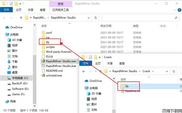 6、打开Crack文件夹,将lib文件夹复制替换到安装路径;