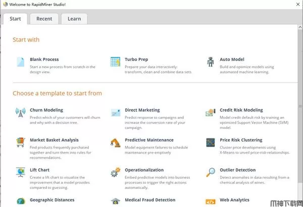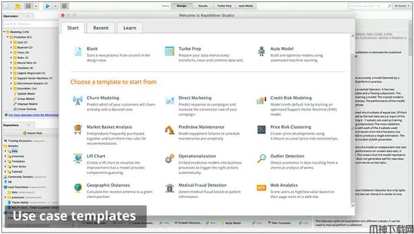 RapidMiner是一款专业强大的数据挖掘图形化工具,它为用户免费提供数据挖掘技术和类库,在一个非常大的程度上有着先进技术,最大特色就是图形用户界面的互动原型。除此之外,这款软件拥有超过1500种机器学习算法和函数库,可以为任何用例构建最强可能的预测模型,同时可视化工作流程设计人员利用预定义连接,内置模板和可重复工作流程,加速了预测模型的原型设计和验证,能够满足用户的所有商业智能和高级分析需求。不仅如此,它还支持支持预测性分析建模与验证,支持数据访问、数据探索、数据准备、数据清洗、数据建模以及模型验证等功能,能够访问所有类型的数据,支持在所有主流平台和操作系统上运行,非常符合用户的使用情况。