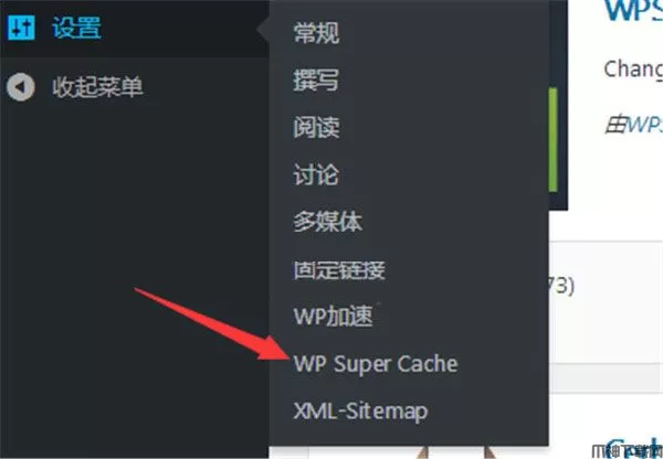 2、安装后有两个方法进入。在已安装插件中找到WP Super Cache进入设置,或者在wordpress后台的设置中进入WP Super Cache。