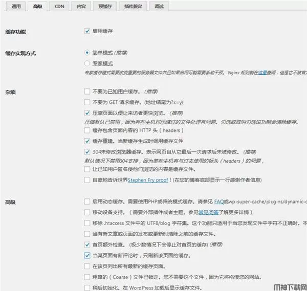 缓存有效期:默认10小时,如果网站更新频率快可以改短些,否则默认即可。