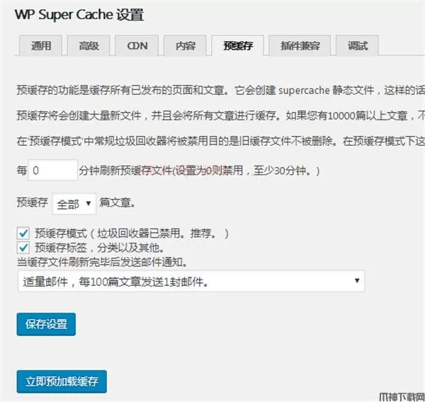 立即预加载缓存这个按钮酌情考虑,如果你文章不是很多,空间又足够大,那么可以尝试。