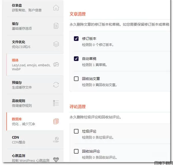 这些功能与 wp optimize插件基本都是一样的,所以用 wp optimizie清理也行。换个角度也可以理解成 wp optimize 可以被 wp rocket给取代。