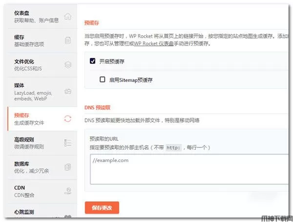 开启预缓存:提前生成缓存文件,这样用户打开网站速度就快。Sitemap预缓存不勾选,这样搜索引擎抓取的是最新sitemap文件。