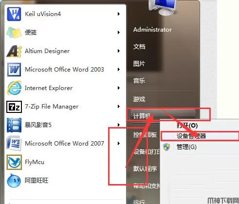 2、检查: 找到电脑的”设备管理器“: 打开开始菜单,找到“计算机”;