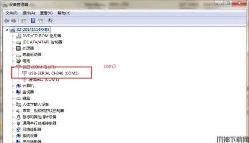 4、检查: 找到电脑的”设备管理器“ 在电脑的“设备管理器”中查看是否有相应的硬件连接。 如果没有我们往往要下载ch340的硬件驱动,可以搜狗搜索一下,有很多的这样的驱动,任意下载一个安装后,在连接上就可以了。 如果正确连接应该有一下的结果。