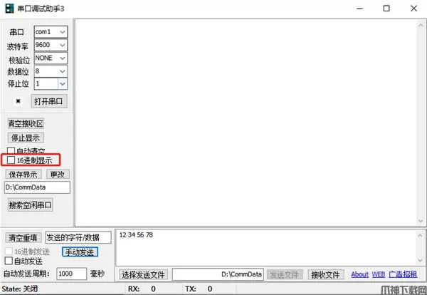 在这里,用户可以使用16进制调试串口的数据,用于检验其他软件的包文。