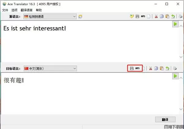 2、Ace Translator能够自动检测输入的语言,然后自动翻译为系统使用的语言
