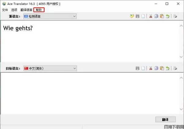 1、双击打开“AceTrans.exe”软件,点击帮助下的输入注册码