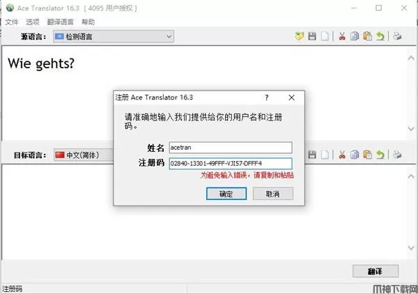 2、将“注册码.txt”文件下的注册码复制到软件对应位置,点击确定