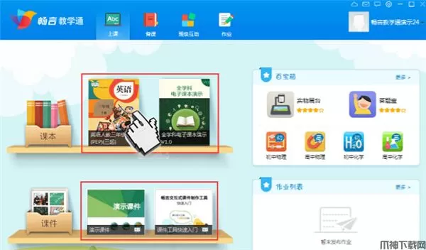 点击课本或课件封面,可以打开相应的电子课本和课件进行教学。