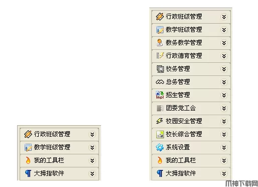 (左图为:权限较少用户的登录界面导航栏)(右图为:权限较多用户的登录界面导航栏)