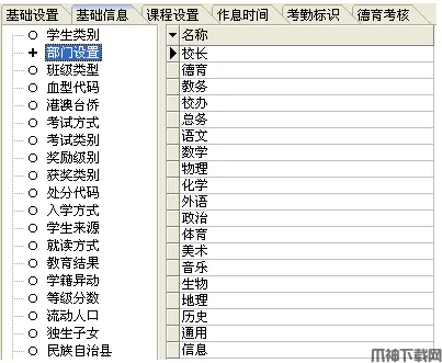 点击“部门设置”按钮,软件会自动跳转到相应设置界面,选择“课程设置”(如下图)。