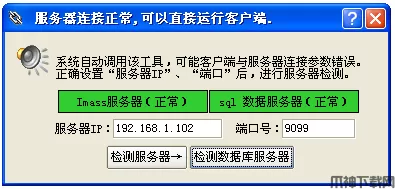 添加正确的服务器IP、端口号,然后点击按钮“检测服务器”,再点击按钮“检测数据库服务器”,若一切正常无错误,窗口状态(如下图)