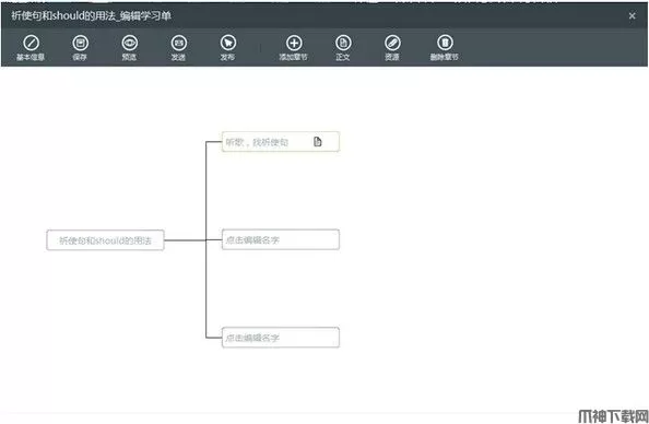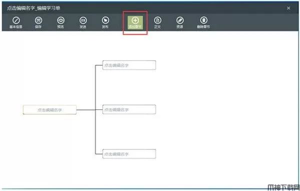 在新建的学习单窗口,点击“添加章节”按钮,点击一次就会创建一个章节,并自动按照向右导图结构排列