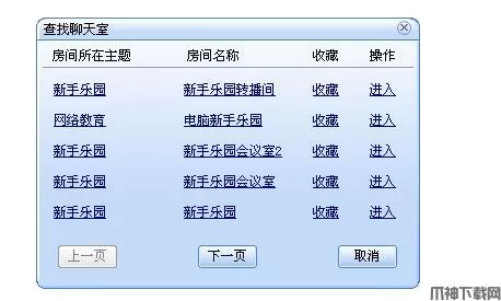 点击“确定”按钮,系统将会自动为您查找符合条件的房间,点击其房间所在主题可以在大厅页面部分显示该区房间列表;点击“收藏”可以将该房间添加到收藏列表中;点击“进入”即可直接进入该房间。