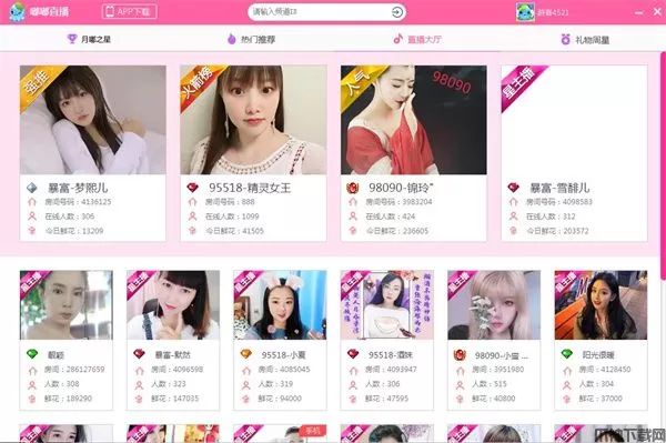 热门推荐可以帮您查看到当前最热门的房间和主播,直播大厅可以让你查看当前所有主播房间,礼物周星将为您实时展示目前正在争夺中的礼物周星榜单和上期周星。