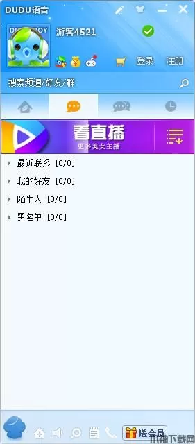 登陆后大家就可以看到咋们嘟嘟的主窗口界面了,头像下的搜索栏,可以快捷搜索房间号或者好友、嘟嘟群,方便进入。