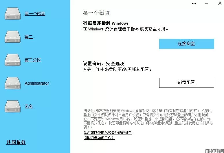 如遇停电或Windows故障秘密磁盘将被锁定在下次系统启动。因为它会自动进行秘密磁盘信息保存在内存中,如果内存没有秘密磁盘将无法恢复在下次系统登录。这增加了最大程度的保护您的文件位于磁盘上。