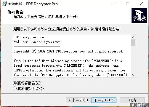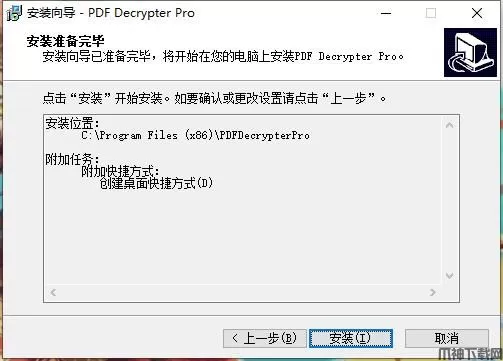 安装向导默认设置的软件默认安装路径为C:\Program Files (x86)\PDFDecrypterPro