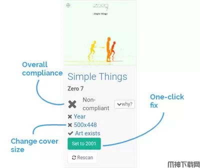 各地都有流派吗?不同尺寸的艺术品?极乐解决了音乐收藏中的不一致问题。您可以要求幸福来自动修复不一致之处,也可以自己确认修复。
