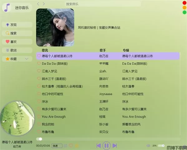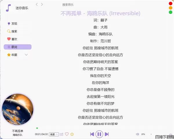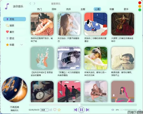 迷你音乐,一般又称迷你音乐播放器。这是一款非常有趣的音乐播放软件。软件提供高质量音乐作品,超多歌手一键搜索,还有各种风格的音乐,好音乐加上好音质,听起来超带感,简直就是你听歌所必备的音乐播放器。迷你音乐界面可以自由切换字体和主题,可以根据自己的喜好进行选择,每个主题看着都很柔和,再加上无损音乐播放,界面清新自然,操作简单方便,听歌效果超级好。