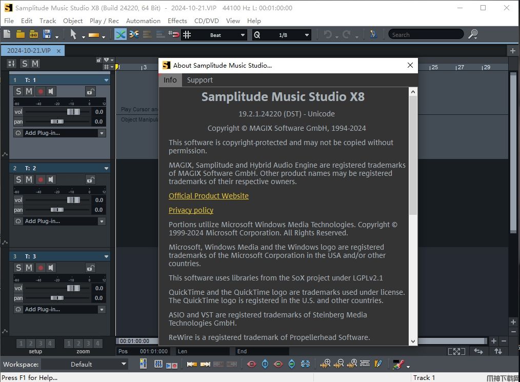 MAGIX Samplitude Music Studio X8是一款专业音乐制作软件,集音频录音、MIDI制作、缩混、母带处理等强大功能于一身,支持同时在最多16个单声道音轨或8个立体声音轨上以24位/ 96 kHz录制,支持使用32个虚拟乐器进行即兴演奏。