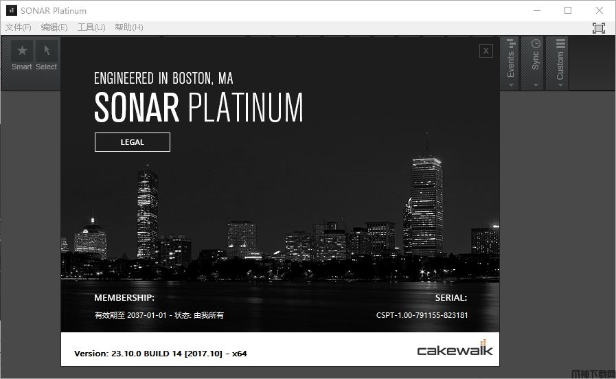 8、以上操作都完成后回到电脑桌面双击运行“SONAR Platinum”,点击帮助——关于,发现激活成功,看到使用到期期限为2037.1.1!