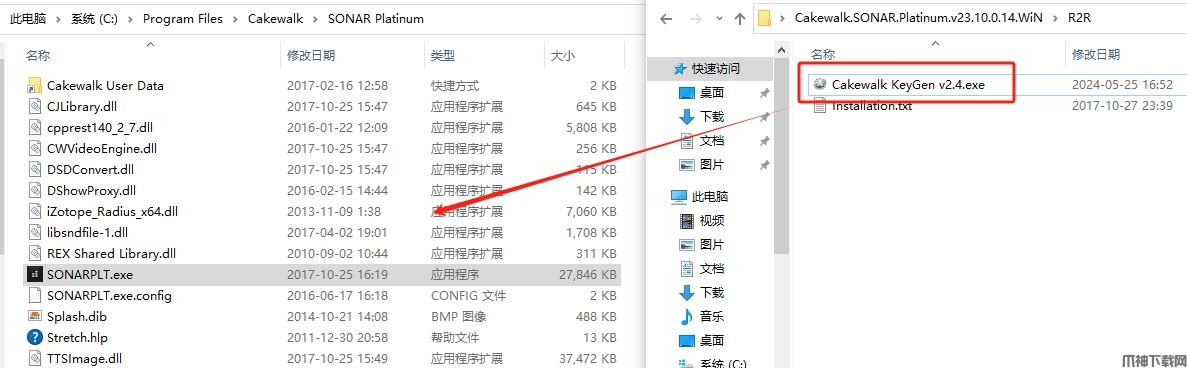 6、将“Cakewalk KeyGen v2.4.exe”复制到“SONAR Platinum”的安装目录下。默认安装目录为“C:\Program Files\Cakewalk\SONAR Platinum”。