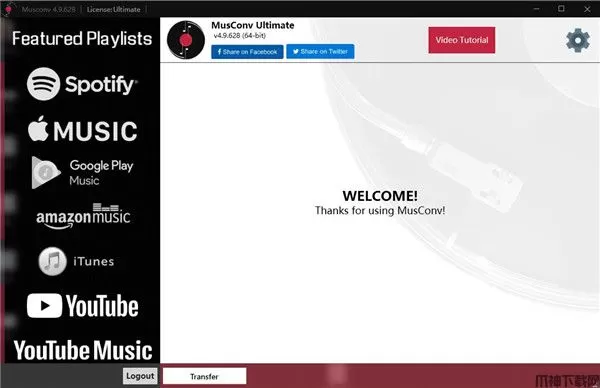 MusConv Ultimate是一款非常好用的音乐播放列表传输软件。界面美观大方,功能强劲实用,支持Spotify、亚马逊音乐、Google Music、Tidal、Apple Music等主流音乐平台互相转移,简单便捷。软件支持用户将音乐程序中的音乐列表从一个程序迁移到另一个程序,例如,用户可以将Apple音乐列表迁移到Spotify,而且其具备了极其简单的操作界面,用户仅需登录账号即可快速完成迁移,非常的方便实用另外它还可以帮助用户轻松的在各种音乐平台中传输播放列表和歌曲,移到任何你想要的地方,包括各大平台,包括:Spotify,Apple Music,Google Music,iTunes,Amazon Music,Deezer,Tidal,SoundCloud,Pandora,Napster,Last.fm,Slacker Radio,Yandex Music等等,有兴趣的小伙伴快来下载体验吧!