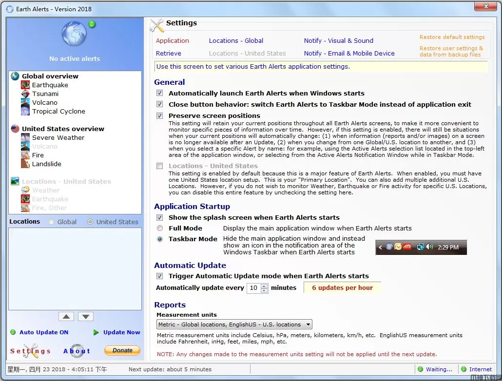 Earth Alerts是一款功能强大的自然灾害警报系统。它能将美国国家气象局和美国地质调查局发布全美各州的自然灾害预报实时性的转发出来,并且根据你所在地区,若是该灾害可能会波及到的地区,则会提供在线实时警报。Earth Alerts界面虽然简洁,但是对自然灾害的资料十分全面,无论是美国各州的自然气候情况,还是自然灾害介绍及经常影响的地区统统都由详细的说明。它是你身处在美国郊区时,一款能够帮助你提前做好充足准备的帮手。