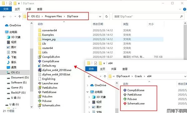 1、在本站下载解压,后得到crack文件和DipTrace原程序;