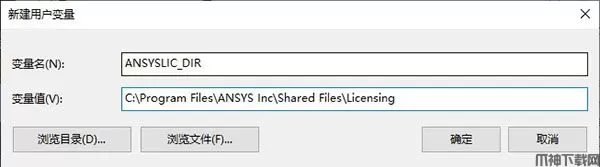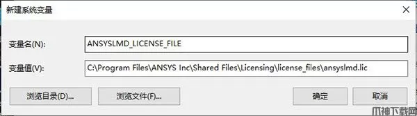 7、新建系统变量,ANSYSLIC_DIR=指向\ Shared Files \ Licensing