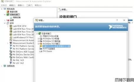 2、找到“设备和接口”,右击选“新建”,选择“仿真NI-DAQmx设备或模块化仪器”,点击“完成”