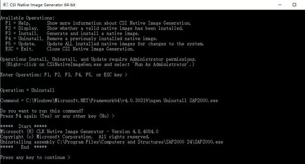 7、依次按下两次F4进行UNINSTALL,然后按任意键,再按下两次F3进行INSTALL;