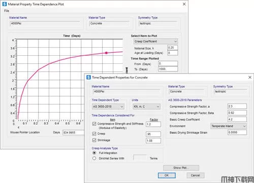 AS3600-2018 规范中添加了混凝土随时间变化的行为,包括徐变、收缩和随年龄变化的刚度。