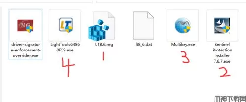 即按照图里的1234的顺序先安装完注册表,驱动,和lighttools的程序