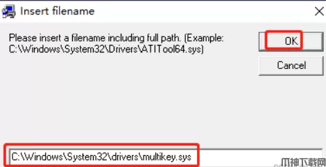 再输入C:\Windows\System32\drivers\multikey.sys,点ok