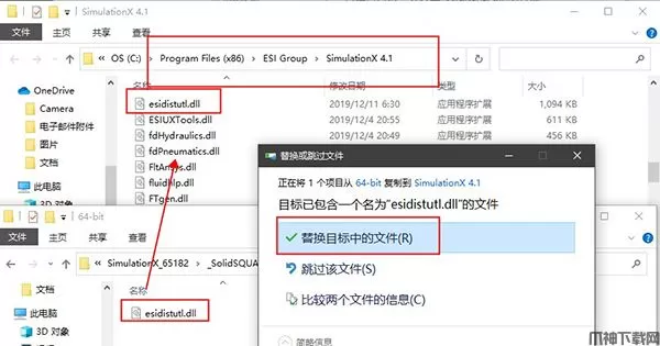 10、先不要运行软件,根据系统位数选择对应的esidistutl.dll补丁及许可证文件pam_lmd_SSQ.dat,复制到软件安装目录下