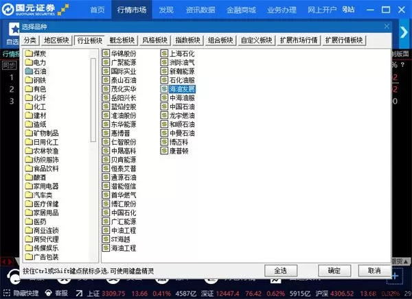 3、找到心仪的版块后可以自由挑选不同的股票,点击确定即可。