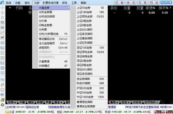 答:在分时图上,点住右键拖开一段区域,松开鼠标,在弹出的右键菜单中选择"区间统计"(这种方式在分析图中亦可)