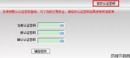 如图:第三步:首次登录成功后,需自行更改认证密码,如图: