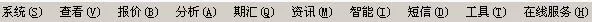 打开“同花顺”,可以看见系统、查看、报价、分析、期汇、资讯、智能、短信、工具、帮助等菜单。在这里您能找到几乎所有的功能。其中有些命令旁边有图标,这样便可以很快地将命令与图标联系起来。