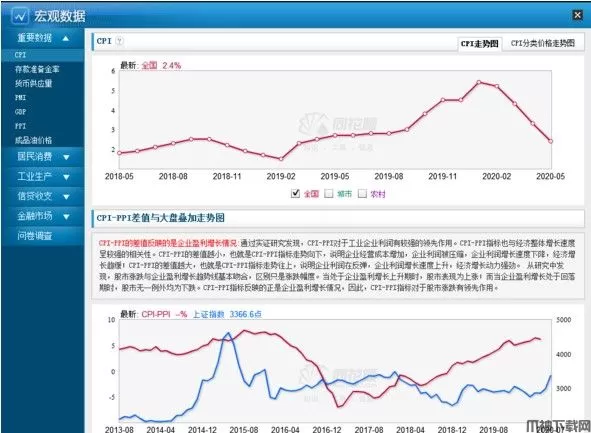 该数据分为五个部分:重要数据、居民消费、工业生产、信贷收支、金融市场。其中重点关注的数据有:CPI、PPI、 存款准备金率、货币供应量、PMI、GDP、成品油价格。